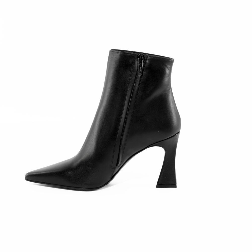 Stivaletti realizzati in morbida pelle con silhouette affusolata e tacco a rocchetto.