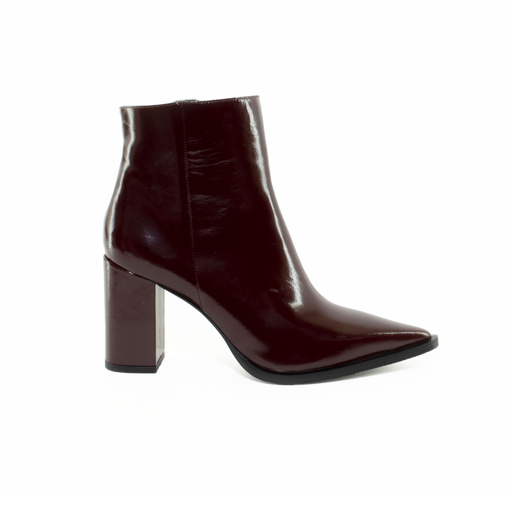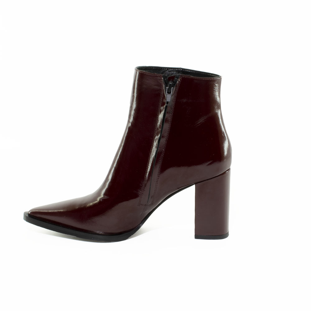 Stivaletti realizzati in pelle naplak con silhouette affusolata e tacco alto dritto.