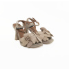 Sandali realizzati in pelle scamosciata con fiori applicati.
