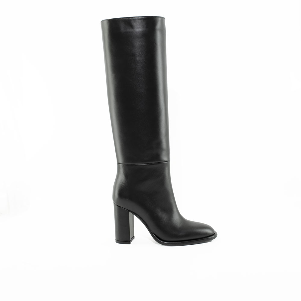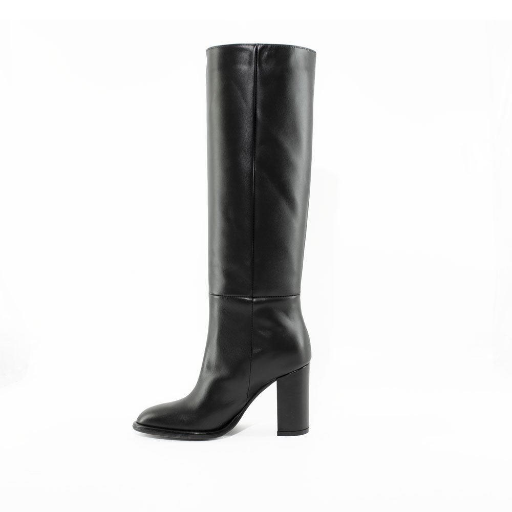 Stivali a tubo realizzati in morbida pelle con punta stondata e tacco.