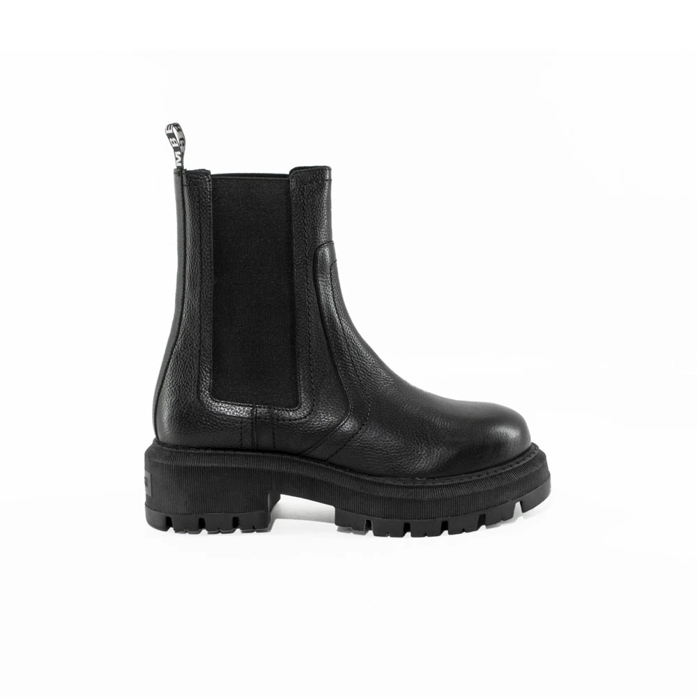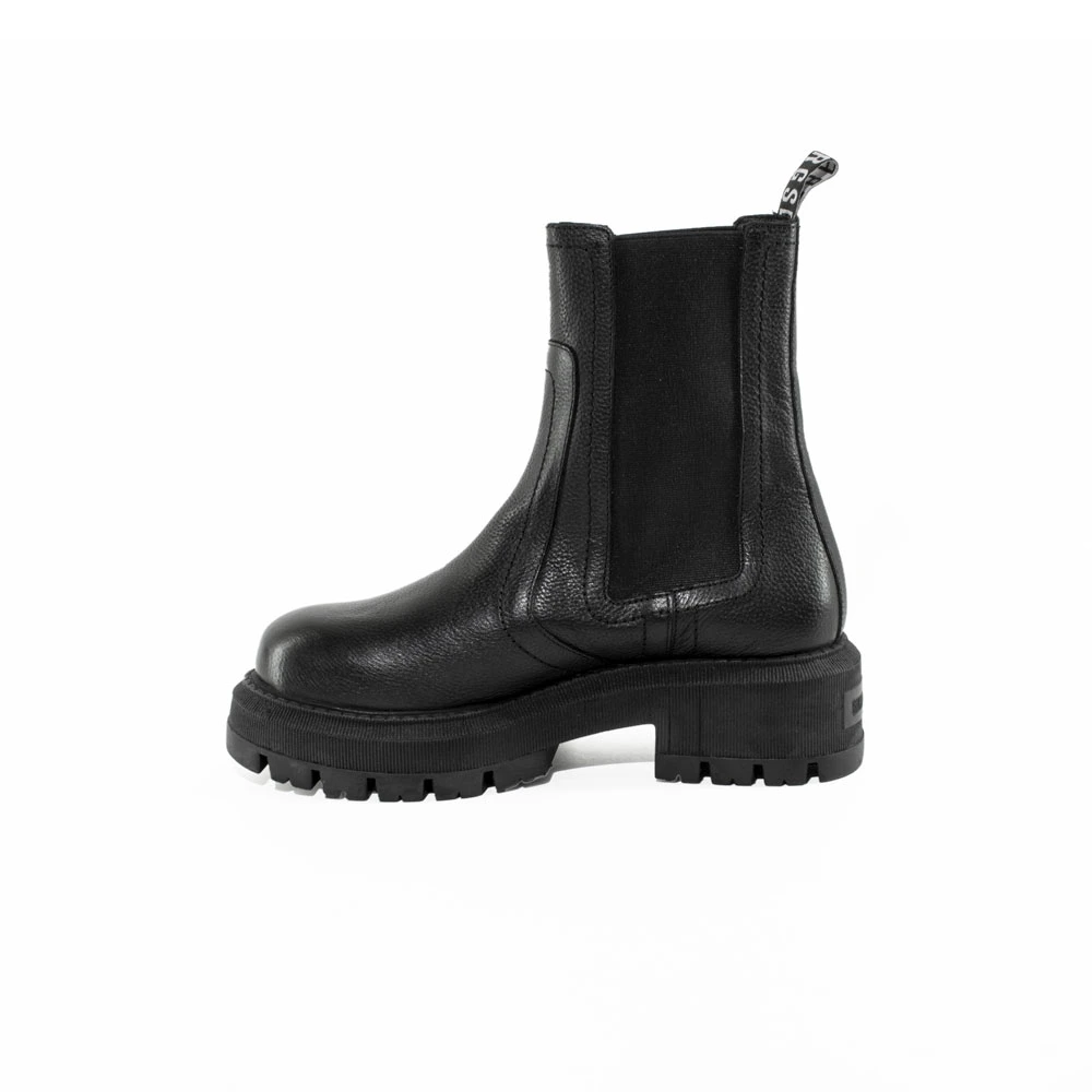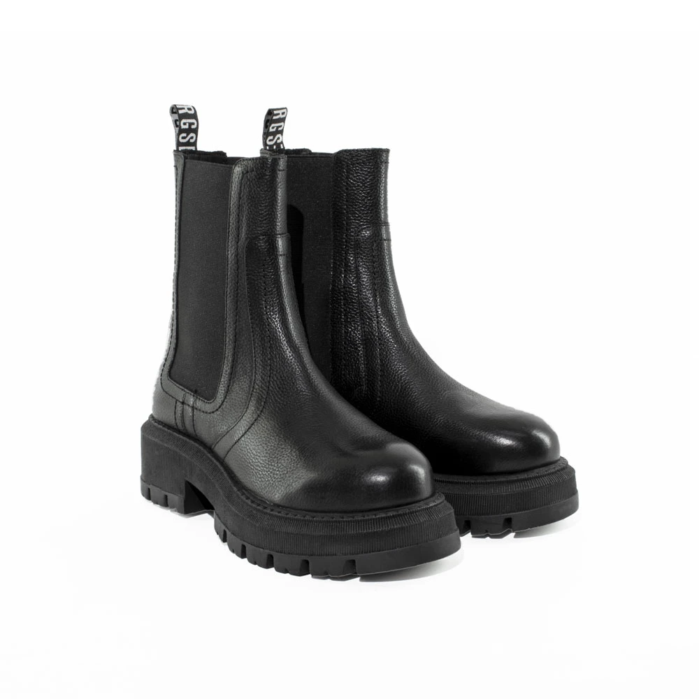 Stivaletti in pelle con elastici laterali e suola carrarmato.