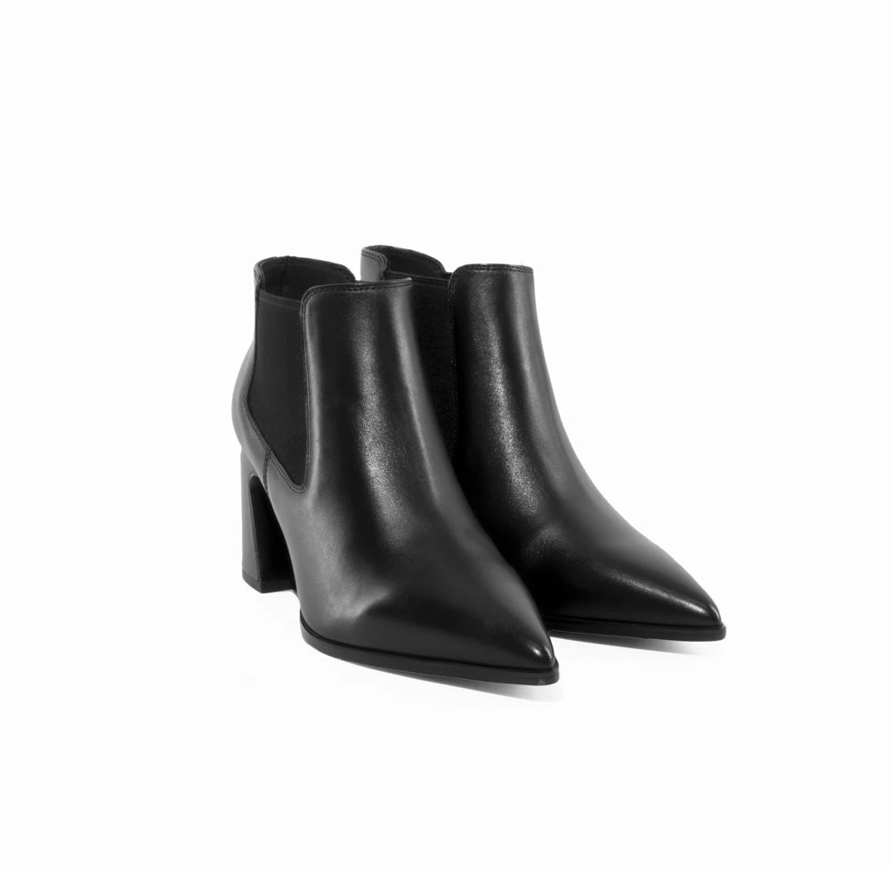 Stivaletti alla cavigia con elastici. Realizzati in morbida pelle con silhouette affusolata e tacco medio.
