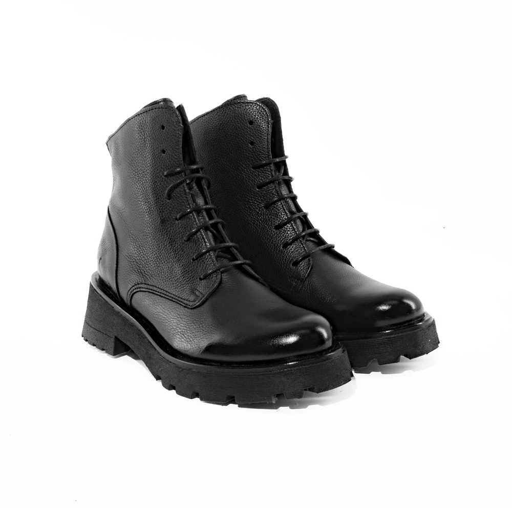Anfibi realizzati in morbidissima pelle con lacci e cerniera sul tallone.