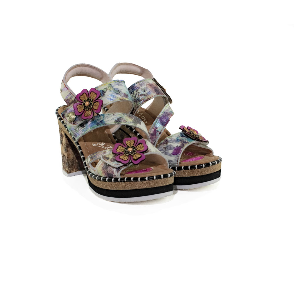 Sandali da donna in pelle stile boho con cinturini incrociati con chiusura a strappo.