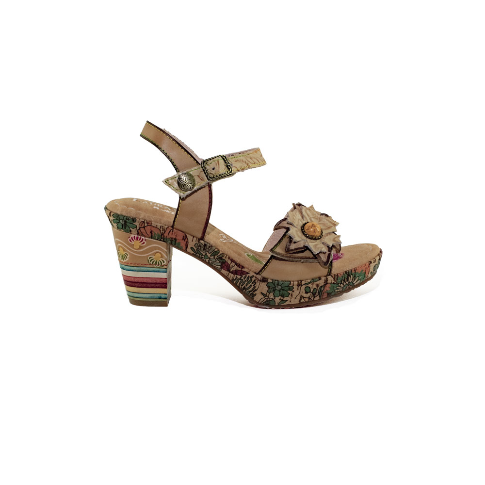 Sandali da donna in pelle stile boho con cinturini incrociati con chiusura a strappo.