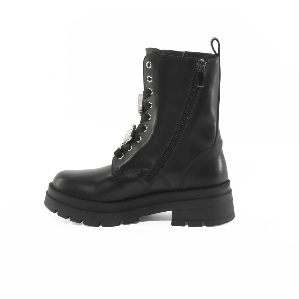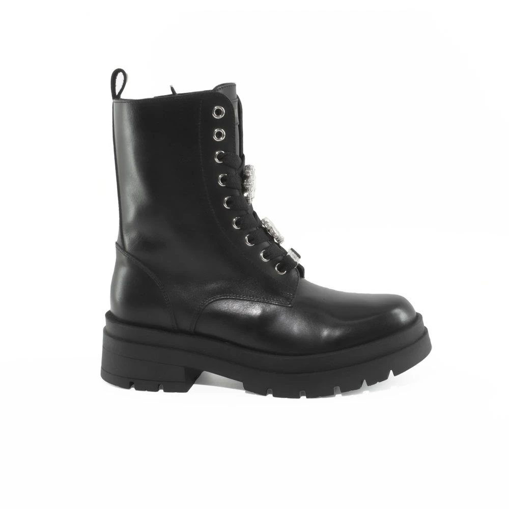 Anfibi realizzat in morbida pelle con accessorio rimovibili, 9 fori e fondo gomma.