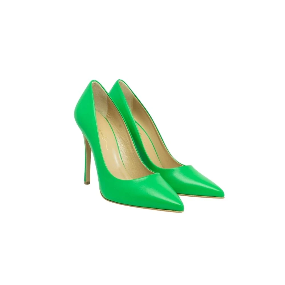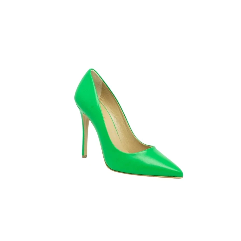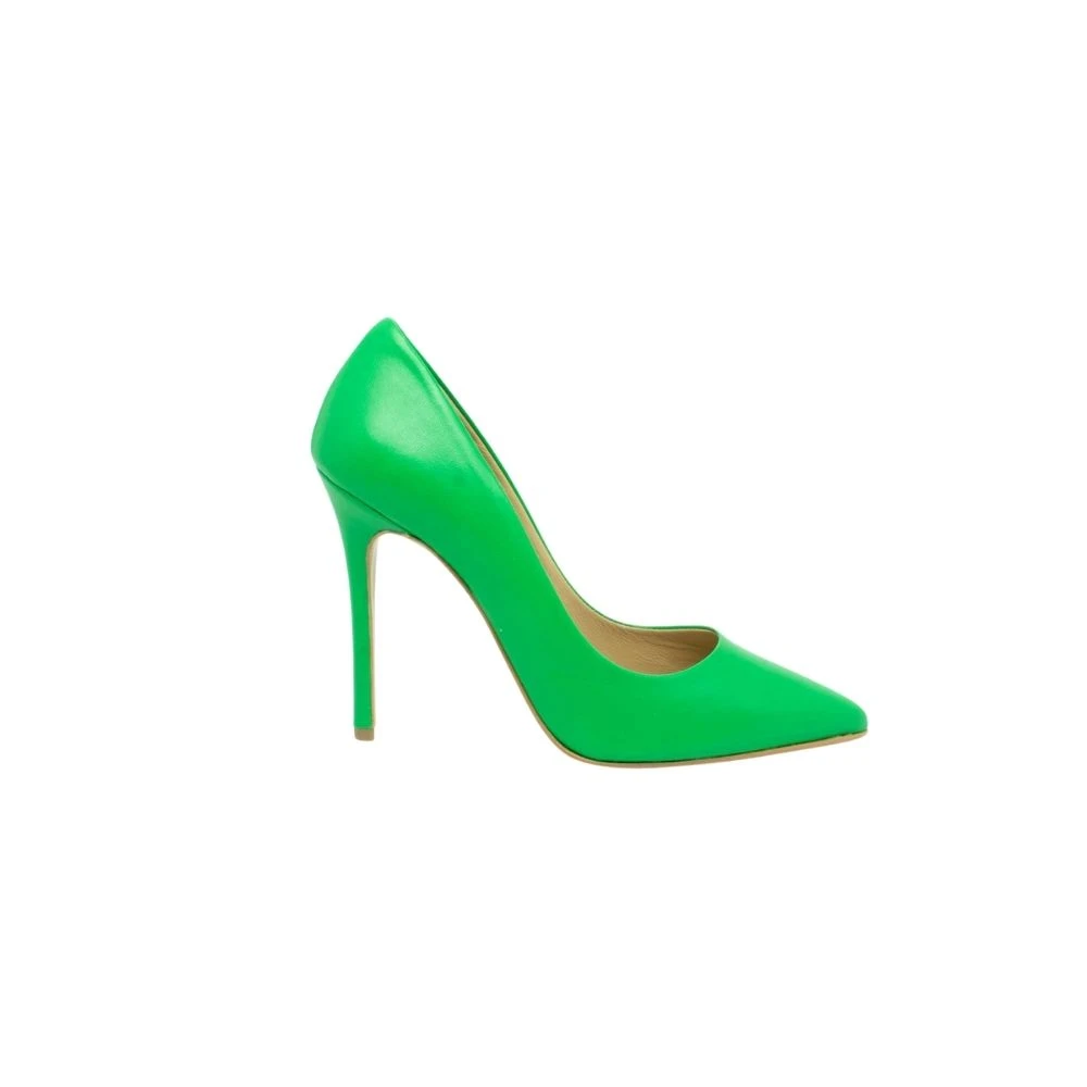 Pumps in pelle con tacco a spillo e punta affusolata.