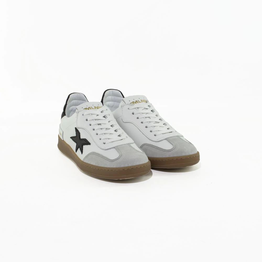 Pronte ad aggiungere un tocco di stile unico al vostro guardaroba con le nuove sneakers di Ranyè. Realizzate in pelle white, blocco tallone e stella black. Da indossare all day, ideale con abiti midi o pantaloni cropped. Plantare estraibile.