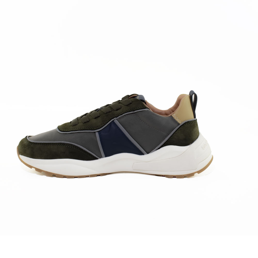 Sneakers realizzate in pelle e tessuto. Perfette per l’uomo moderno che non vuole scegliere tra comfort e stile per un look sempre al passo con le ultime tendenze.