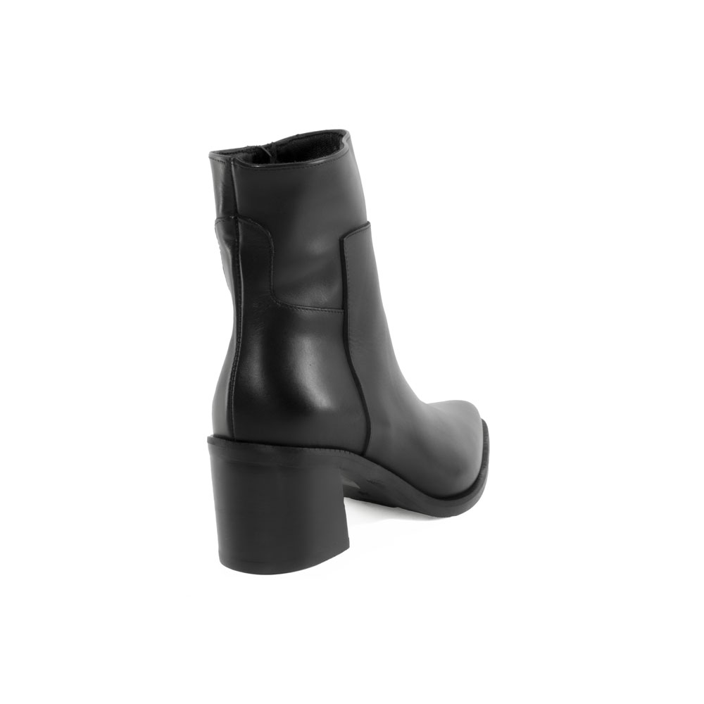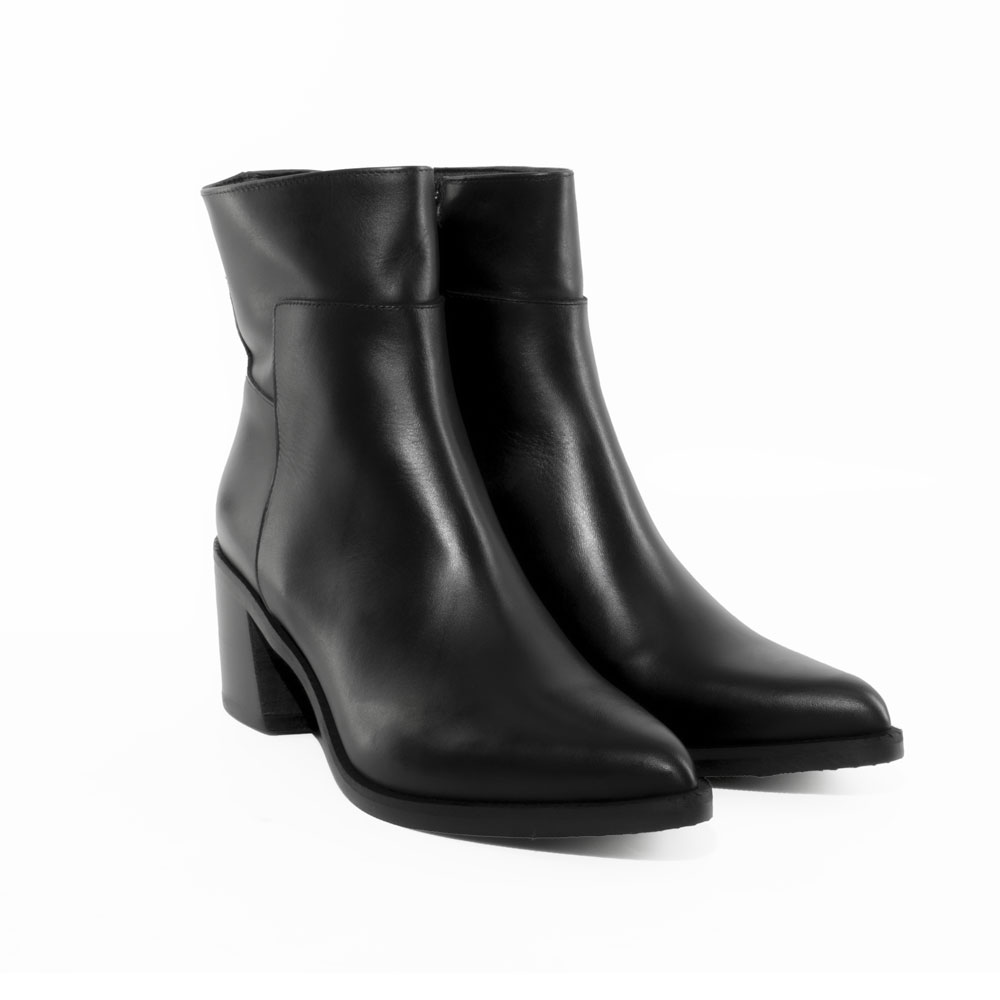 Stivaletti realizzati in morbida pelle, con punta affusolata e tacco largo medio per un comfort prolungato. Linea elegante e versatile, perfetta con gonne e vestitiper look autunnali e invernali sempre chic.