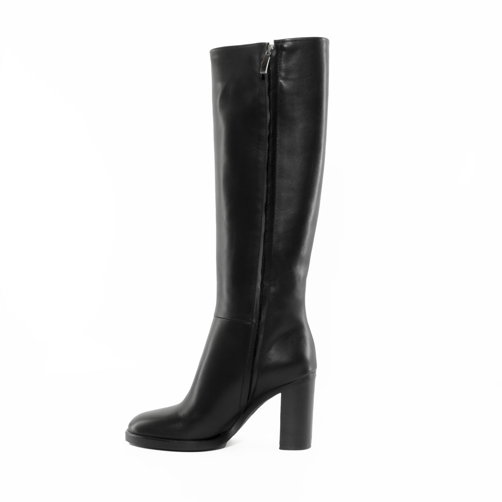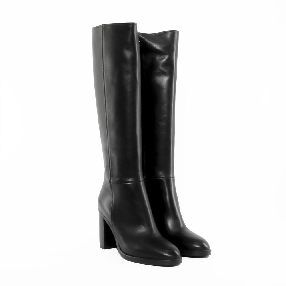 State al passo con le ultime tendenze con questi stivali in pelle morbidissima. La linea è dritta, con puntale lievemente stondato, tacco medio e alto gambale al ginocchio.
