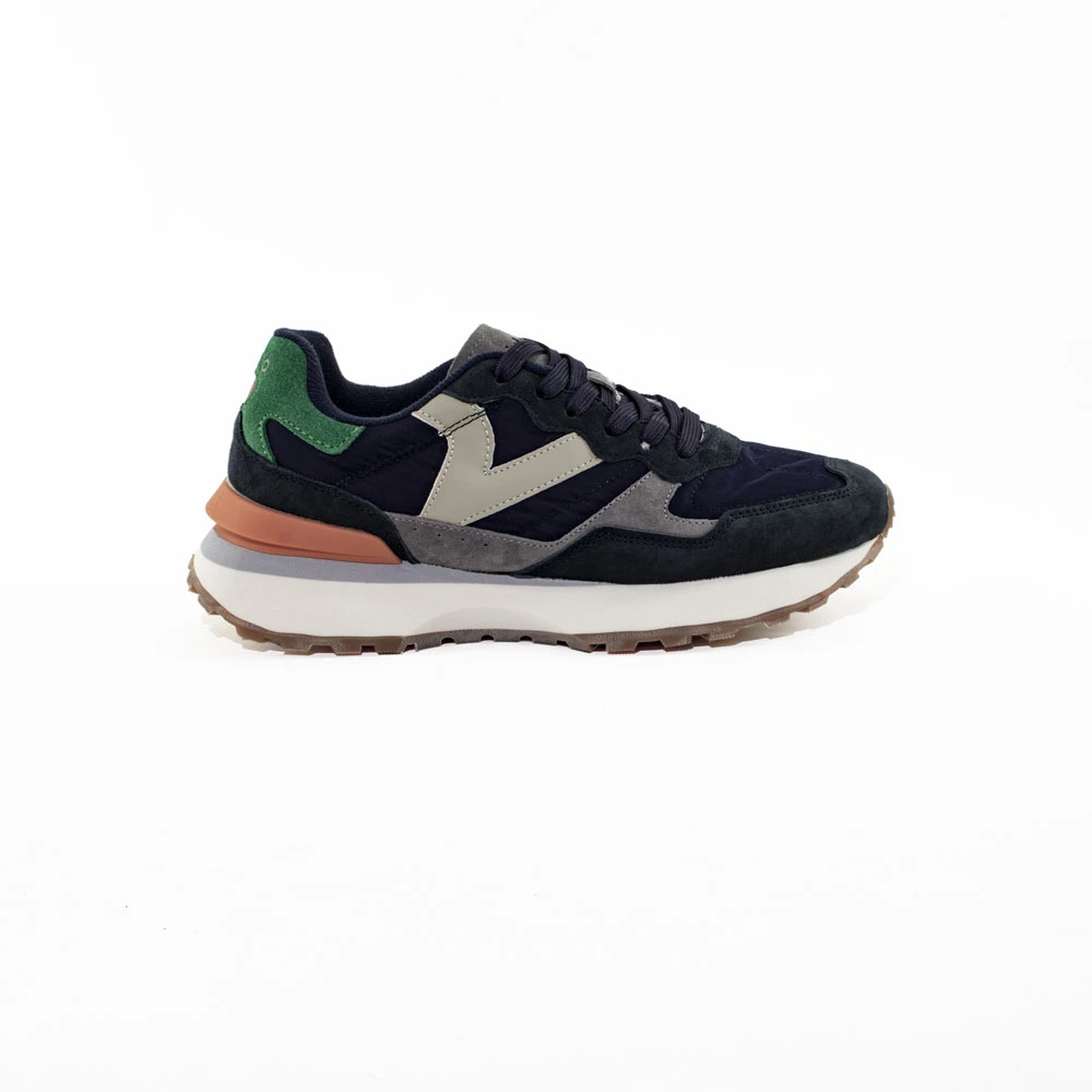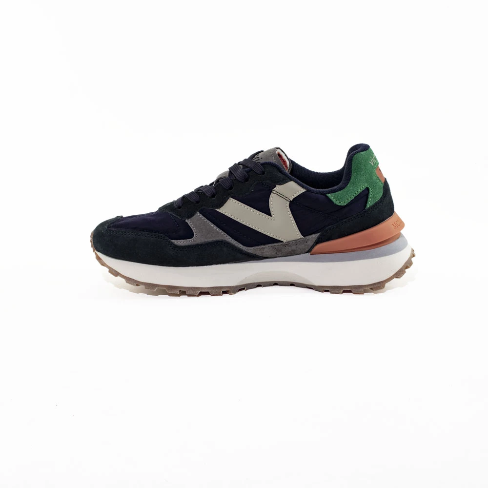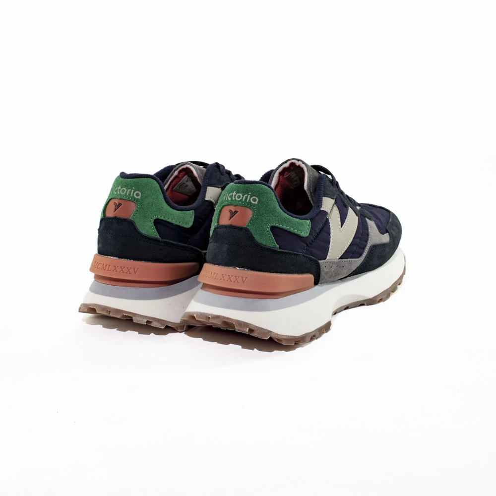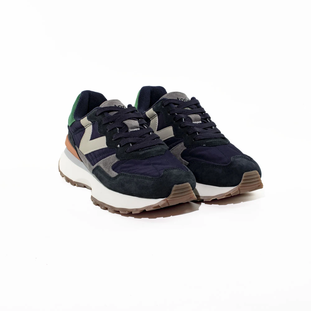 Sneaker in nylon con inserti sovrapposti in crosta di cuoio. Blocco sul retro con incisione 1985 abbinata alla linguetta. Suola in gomma. Plantare interno in memory foam.