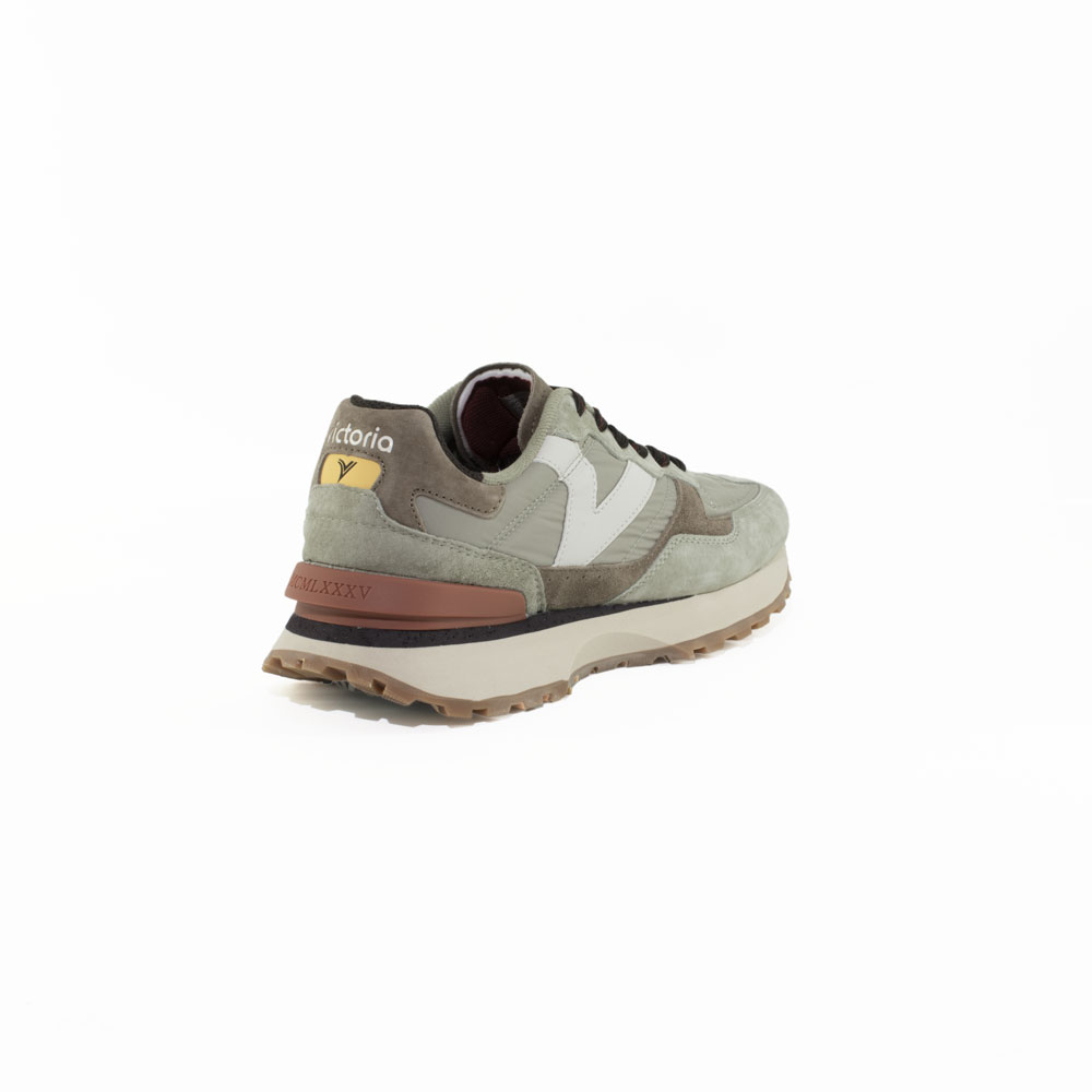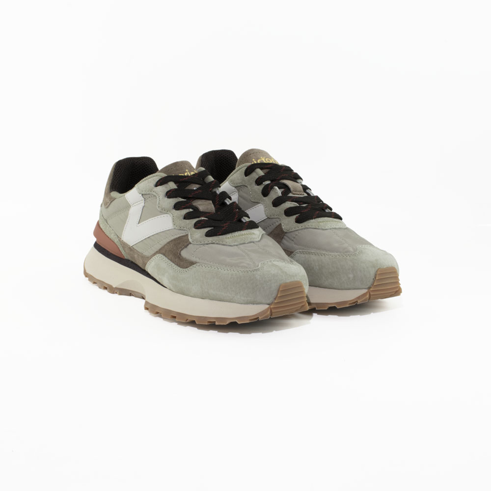 Sneaker in nylon con inserti sovrapposti in crosta di camoscio. Suola in gomma. Plantare interno in memory foam.